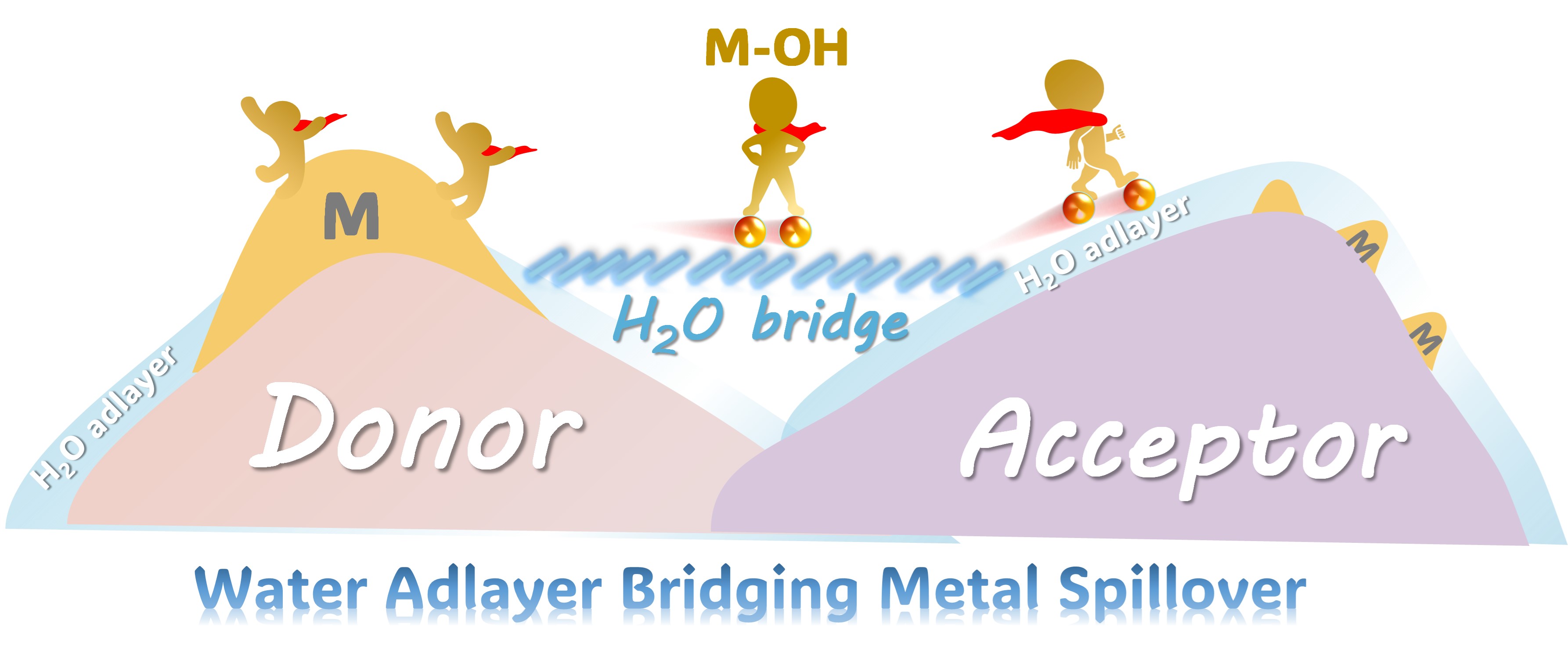 相关研究成果以“Water adlayers bridging metal spillover to boost catalytic activity”为题,于近日发表在《自然-通讯》(Nature Communications)上。该成果的共同第一作者是521组博士毕业生范雅梅和博士后李荣坦。该研究得到国家重点研发计划、国家自然科学基金、中国科学院碳中和光子科学中心等项目的资助。(文/图 范雅梅、李荣坦)